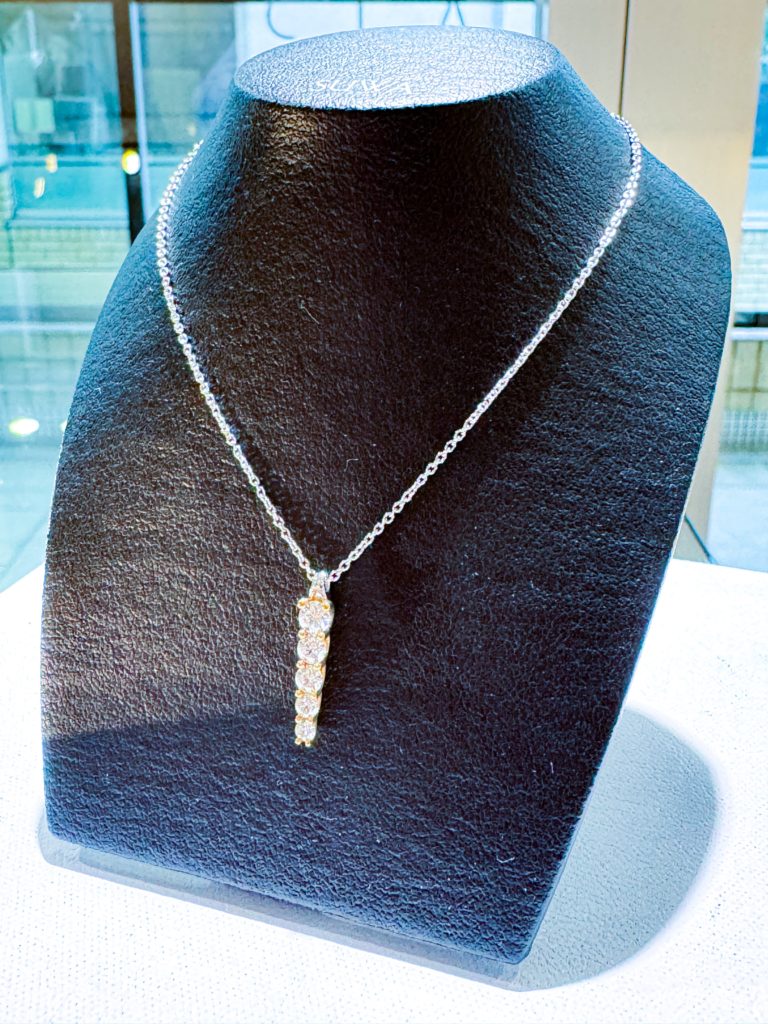 SUWA ダイヤモンドペンダント 2024年5月18日 by ijima Pt950 K18 ダイヤモンドペンダント グラデーションした石の連鎖が、上から下へ美しい輝きの流れを作りだしています。エアセッティングにより サイドの空間からより多くの光を取り込み、強い輝きが引き出されます。 ダイヤモンドの連鎖の輝きを最大限に引き出した、クラシックなペンダントです。