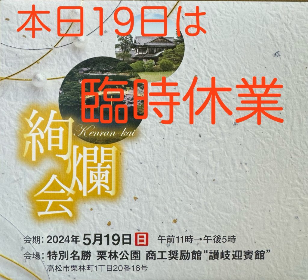 本日、栗林公園で店外催事で休業いたしております。
