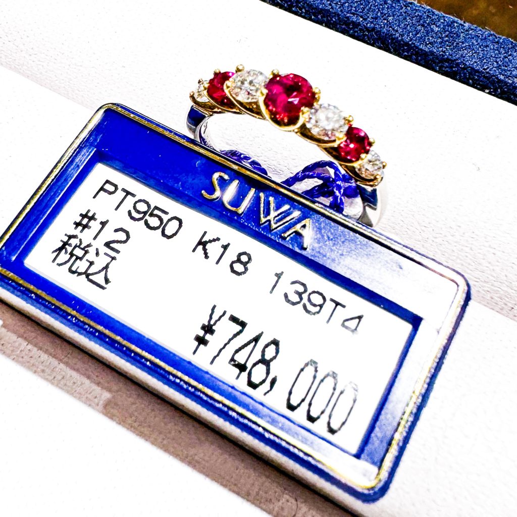 SUWA ルビーリング 2024年5月27日 by ijima Pt950 K18 ルビー ダイヤモンドリング 0.44ct 0.43ct ルビーとダイヤモンドは可能な限り平行に宙に浮かせてセッティングされ、光を多く取り入れ、美しい色と輝きが引き出されています。 細部にわたり丁寧に作られた横見も美しい華やかなリングです。 748,000円税込