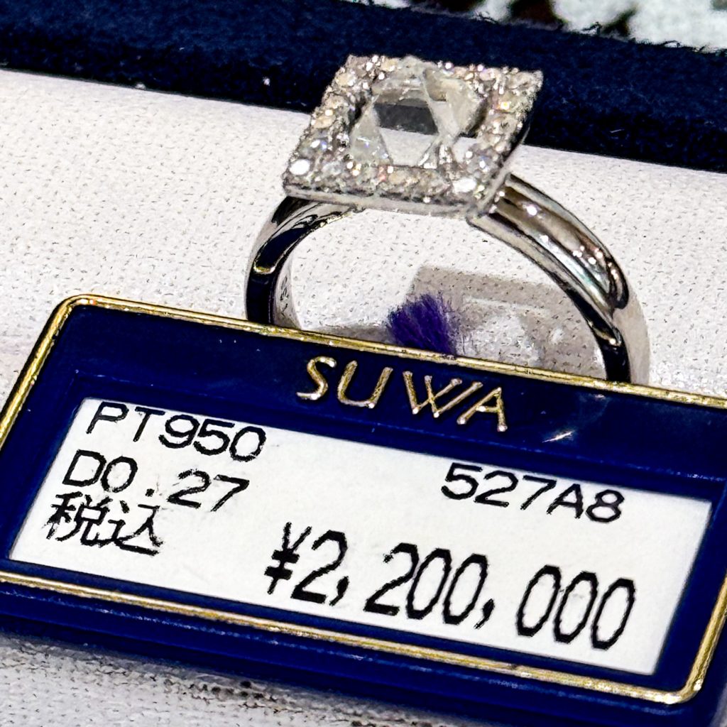 正八面体ダイヤリング 2024年8月10日 by ijima SUWA アンカットダイヤモンド 正八面体の美しいダイヤモンド 1.36ct South Africa 産 PT950/1000 脇石ダイヤモンド 0.27ct 定価 税込2,200,000円