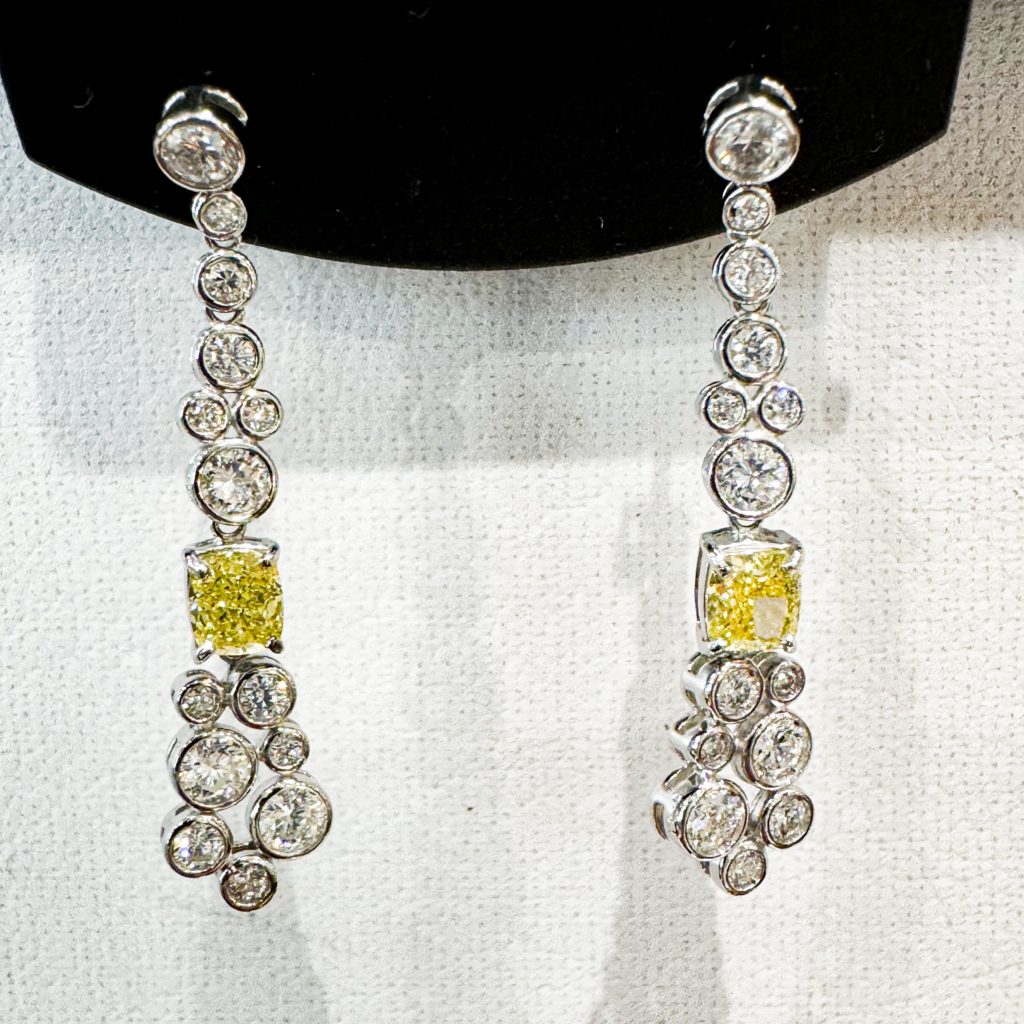 インテンスイエローイヤリング 2024年9月30日 by ijima 0.328ct FIY SI2 ×2ps 0.41ct×2 pt センターは、それぞれインテンスイエローのSI2 2ピースとも 0.328ctと同じ大きさ。 クラリティも同じ。 ぶら下がりの揺れるタイプのピアスで、それぞれ、0.41ctづつメレダイヤがフクリン留めしています。 もちろん、プラチナ製。 ブログファン限定で 770,000円税込でシークレット販売いたします。