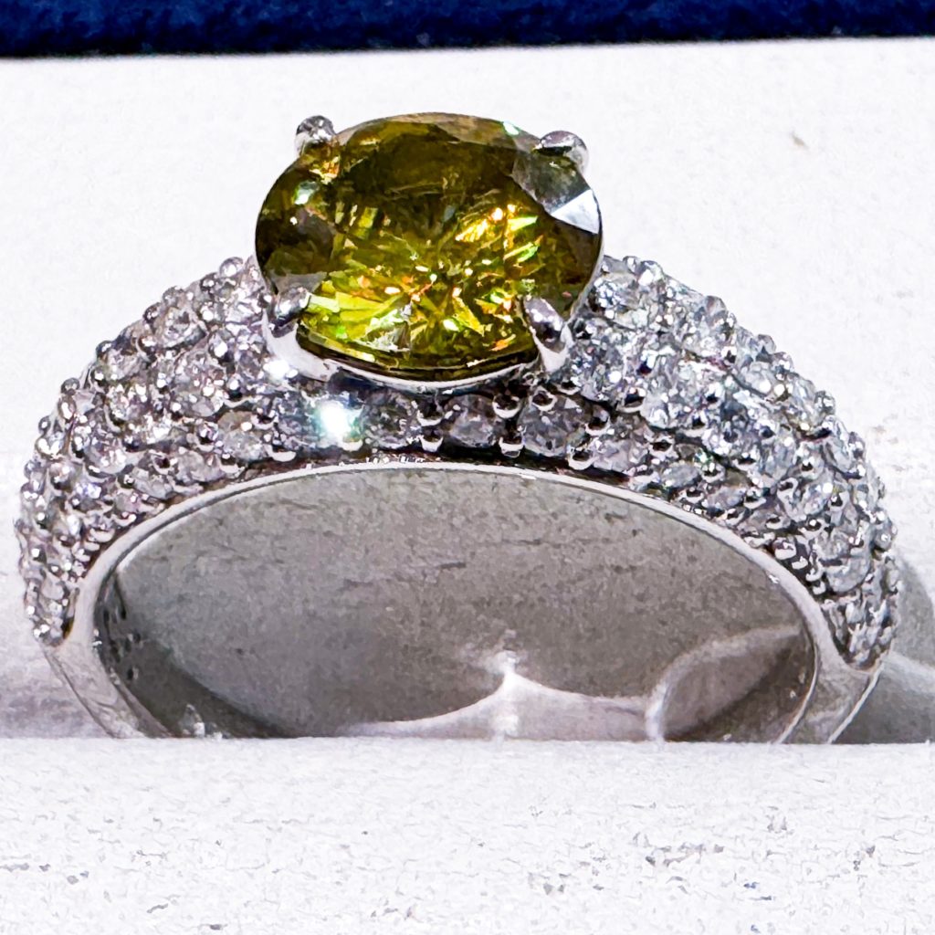 希少 半貴石特集 2024年10月2日 by ijima 今日から「希少 半貴石」のお買い得品をご紹介いたします。 1日目は、スフェーンから。 スフェーンリング 1.59ct 0.85ct Pt900 鉱物名は「タイタナイト」 チタンを含む鉱物なので「チタナイト」とも呼ばれています。 宝石名の「スフェーン」は結晶の形である「楔(くさび)」を意味するギリシャ語から名づけられました。 黄色・緑・褐色の透明度が高い石で、ダイヤモンドより強い分散光を放ちます。 中石 1.59ct ダイヤモンド 0.85ct ブログを見てご来店された方だけに 400,000円税込で販売いたします。