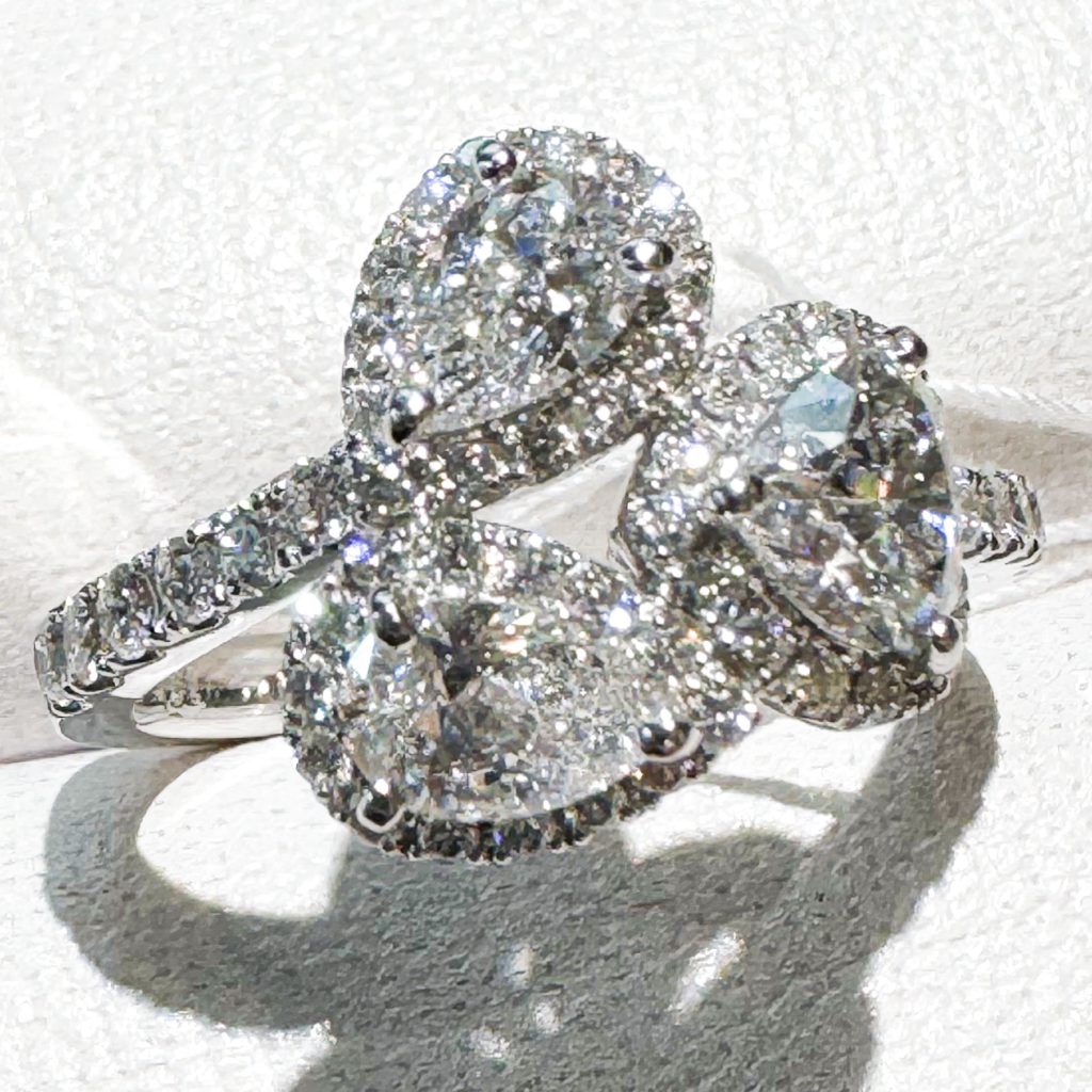 写真の商品は、ハート型が 0.50ct ペアシェープ型がそれぞれ 0.30ct 0.31ct