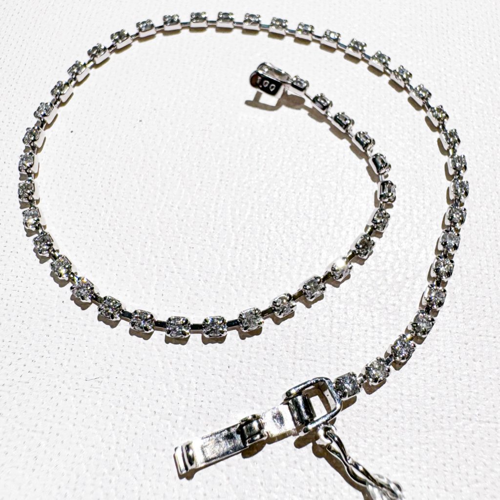 ダイヤ ブレス 2024年11月7日 by ijima ダイヤモンド全周ブレスレットのご紹介です 憧れのダイヤモンドブレスレット。 ダイヤモンドは、納得の「1.00ct」使用。 Pt製で 金具も折り返し金具が付いています。 小さな爪で、シャトーン(台座)も目立たないので腕に装着するとダイヤモンドが目立って美しいです。 ブログを見た方には税込み 240,000円でご奉仕いたします。