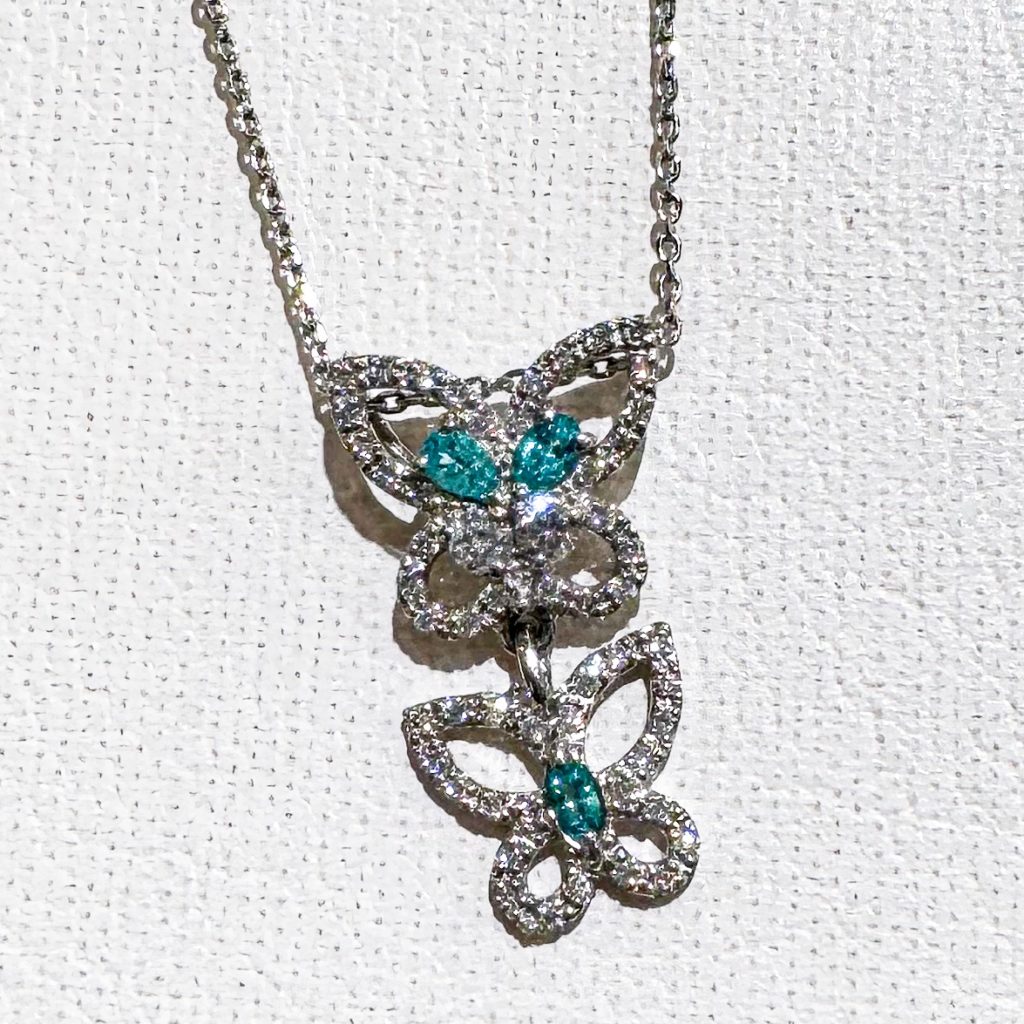 パライバトルマリンペンダント 2024年11月19日 by ijima パライバトルマリン 0.12ct 0.33ct ブラジル産パライバトルマリンを3石 贅沢に使って蝶(バタフライ)デザインペンダントに作りました。 20年以上前に材料用で調達したブラジル産パライバトルマリンの不揃いのメレ石が、余りで残っていたので贅沢に製作してみました。 石の原価は、算段されていません。 ダイヤモンドの材料代、プラチナ地金、Ptチェーンの価格で販売しちゃいます( ´艸`) 早い者勝ち!税込 275,000円 早く来ないと売れてしまいますよ・・・
