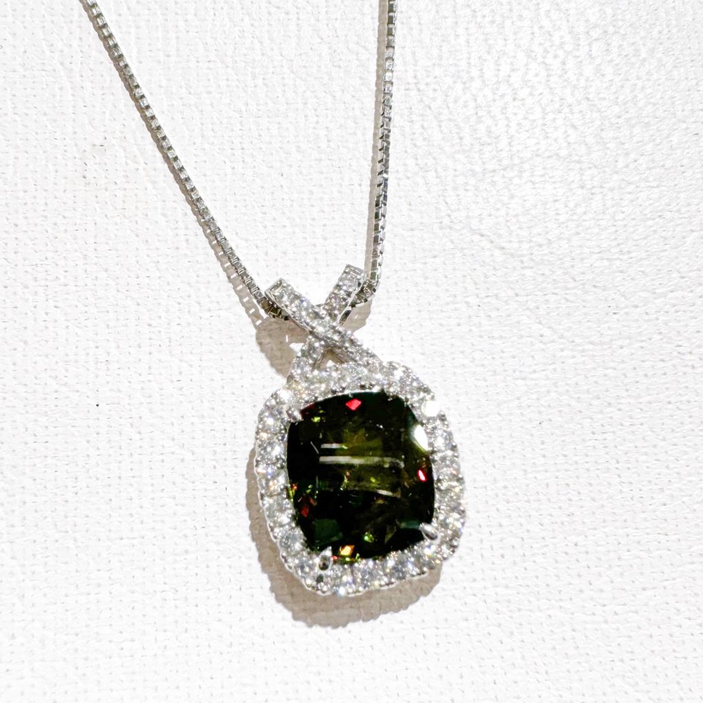黄色、緑または褐色の透明度が高い石で、ダイヤモンドよりも強い分散光を放ちます。