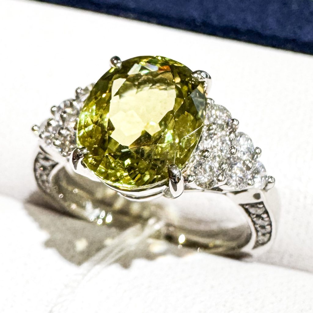 アンドラダイトガーネットリング 2024年11月30日 by ijima アンドラダイトガーネット 4.35ct 0.64ct ダイヤモンドより分散光が強いアンドラダイトガーネット アンドラダイトは。黄色はトパーズに似ていることから「トパゾライト」、緑色のものは「デマントイド」、黒色は「メラナイト」と呼ばれています。 アンドラダイトの光の分散は、 0.0057 でダイヤモンド (0.054) よりも強く独特な色合いを示します。 スリランカ産の珍しい宝石です。 ブログ購読者のみ・・・ 税込 500,000円で販売致します。