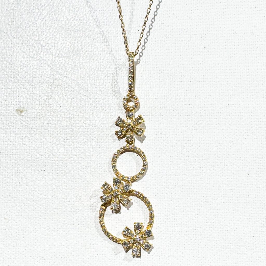 K18 ダイヤモンドペンダント 2024年12月18日 by ijima K18 ダイヤモンドペンダント 1.10ct イエローゴールド ダイヤモンドジュエリー 縦に長いデザインは60cmチェーンで装着すると、Y型になります。 スラッと見えるのでお勧めのペンダントですね。 70cmのチェーンを使ってもっと長く胸のラインより下にぶら下げるのもカッコいいです。 ダイヤモンド 1.10ct使用。 Xmas大特価 税込 300,000円
