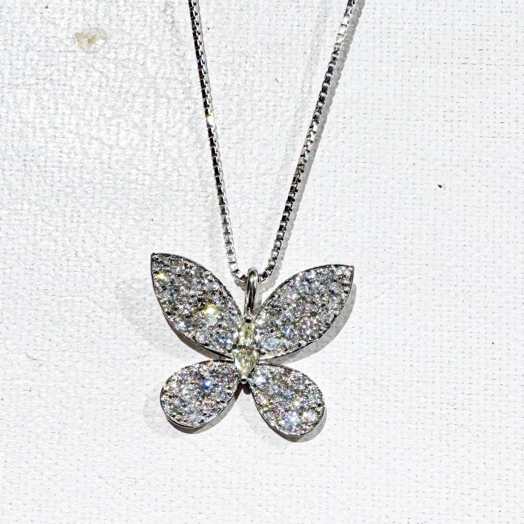 Pt ダイヤモンドペンダント 2024年12月19日 by ijima Pt ダイヤモンドペンダント 1.00ct 人気のバタフライデザイン。 マーキス型とペアシェープ型の地金にダイヤモンドを隙間なく埋め込むには、しっかりと計算された大きさを正確に配置しなければなりません。 爪の位置、ダイヤモンドの配置で、このデザインペンダントは是非が決まります。 もともとヴァンクリーフが得意としていたデザインで、当時はまねのできない加工技術でした。 ダイヤモンド 1ct使用してプラチナで製作しました。 Xmas大特価 税込 250,000円