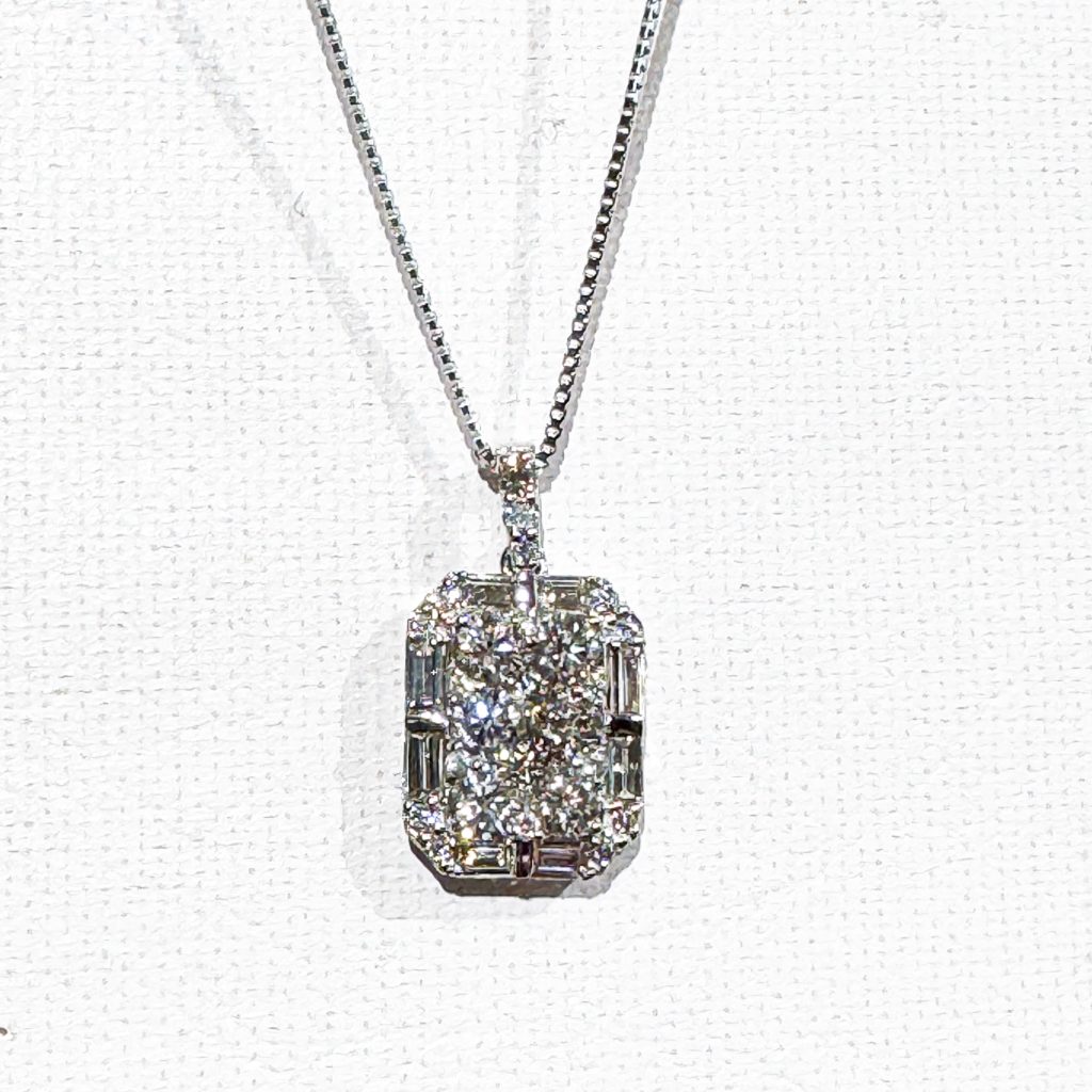 取り巻きのダイヤモンドもスクエアダイヤやメレダイヤモンドを交合に使用して高級感を出しています。
