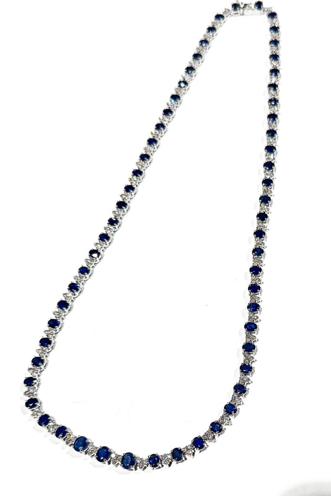 ロイヤルブルーサファイヤを60ピース使用したネックレス。