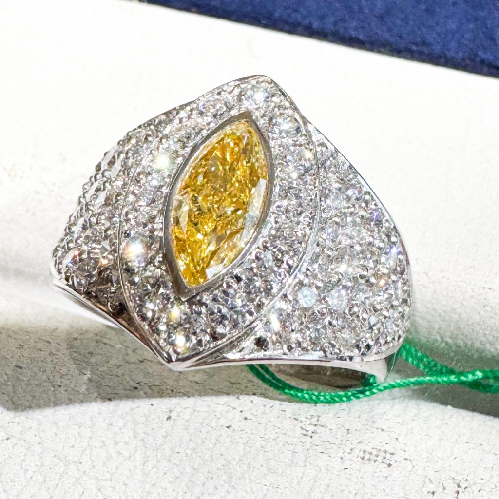 イエローダイヤモンドリング 2025年1月9日 by ijima 0.84ct FIY VS2 1.25ct ファンシーインテンスイエロー 0.84ct VS2 オレンジがかかったように見えますが純粋のインテンスイエローです。 濃いイエローダイヤモンドは、モザイク模様にいろんな黄色が現れます。 蛍光の黄色、オレンジ気味の黄色、透けた黄色、そして鮮やかな黄色。 このモザイク模様が高品質のイエローダイヤモンドです。 取り巻きダイヤモンドは合計で 1.25ct 地金もPt900をしっかり重めに使用しています。 税込 138万円 2025年最初で一番のお買い得価格かも・・・