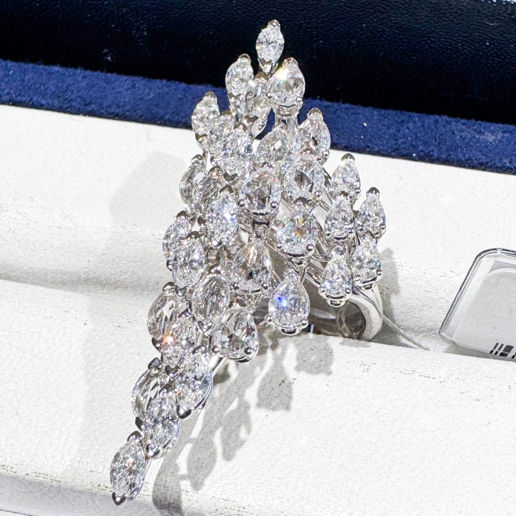 エクレブダイヤリング 2025年1月14日 by ijima エクレブジュエリーから新年の特別協賛品 マーキスカット・ペアシェープカットの白くて美しいダイヤモンドを集結して、流れるような独特なデザインで組み立てられたダイヤモンドリング。 中指・人差し指にブローチの様につけて楽しむリングです。 立ての長さは指を長くきれいに見せます。 合計のダイヤモンドは3.76ct