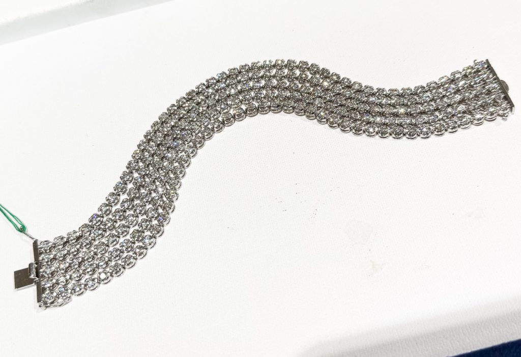 ダイヤモンドブレスレット 2025年1月16日 by ijima Pt ダイヤモンドブレスレット 13.00ct ダイヤモンドを5列に配列した豪華版のブレスレット 装着したらバングルを巻いているよう。 総合計 13.00ctのダイヤモンドは迫力満点です。 ハリウッドレッドカーペットで似合いそうな逸品です。 しなやかに動く繊細な造りが、このようなジュエリーで一番肝心です。 特別価格 300万円税込