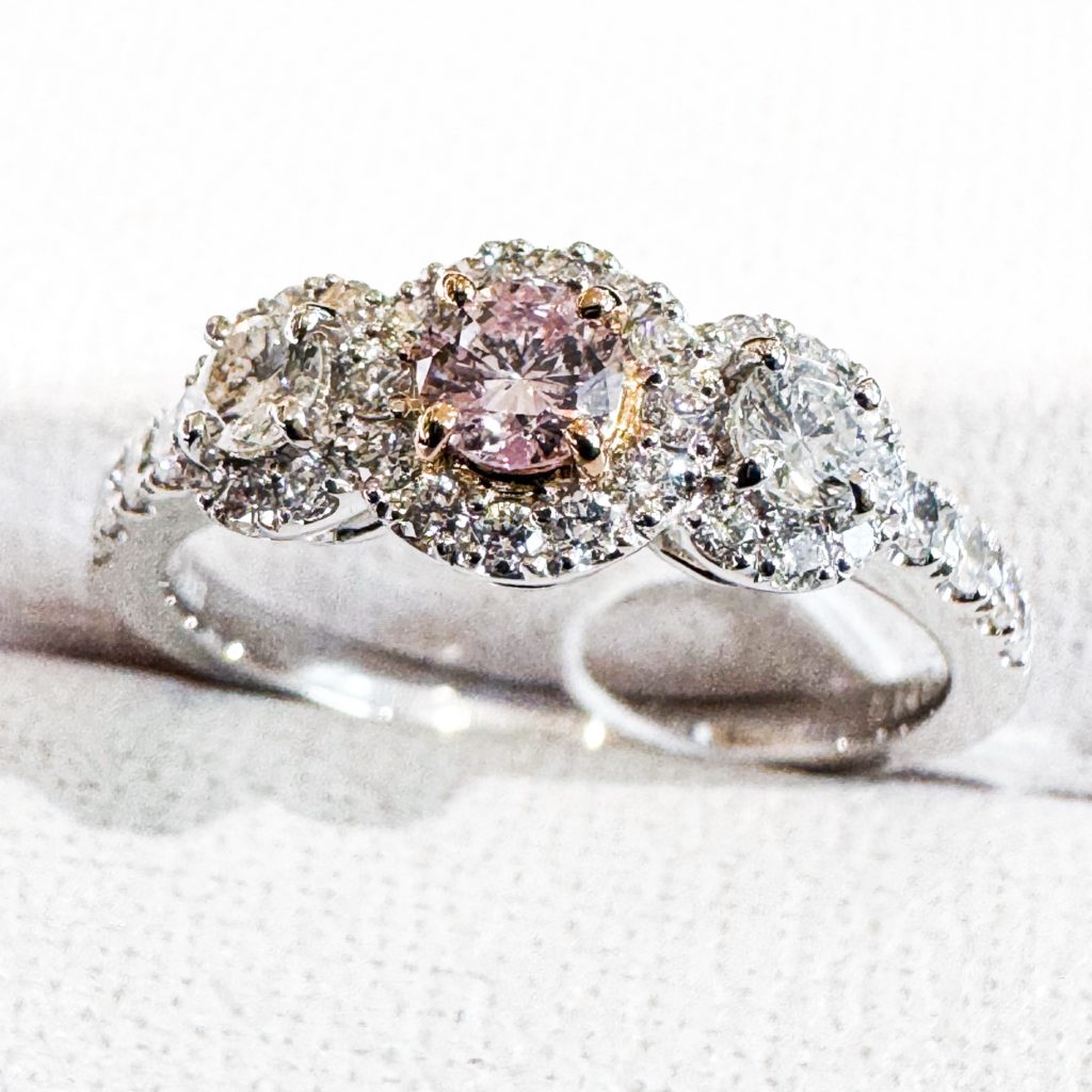 ピンクダイヤモンドリング 2025年2月8日 by ijima ファンシーライトパープルニッシュピンク FLPP I1 0.189ct 脇石 0.53ct Pt950/K18PG パープルニッシュ(紫がかった)ピンクは、ライトピンクに比べてピンク色が濃く深い色に感じます。 小さくてもしっかりとピンク色が引き立つジュエリーです。 今日から決算ジュエリーセールに突入します。 まずは希少のピンクダイヤから・・・ 特別価格 880,000円税込