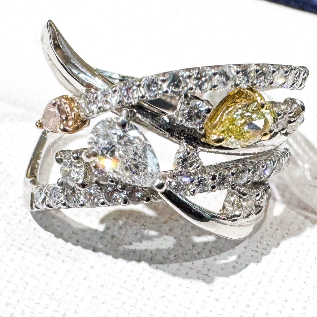 人気の希少カラーダイヤ2ピースにDカラーのペアシェープの3ピースはすべて鑑定書がそれぞれに付いています。