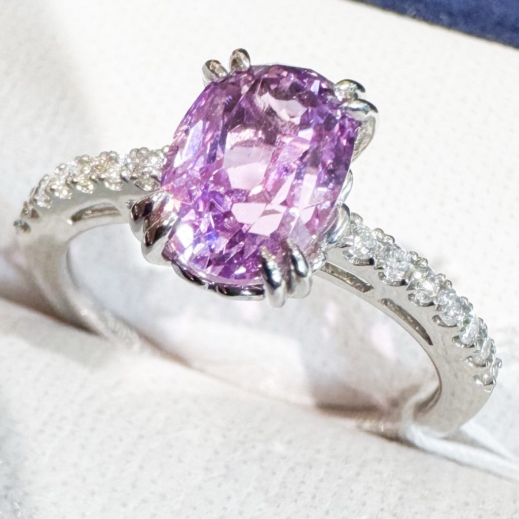 クンツァイトはカッター泣かせの宝石です。劈開性がとても強く、少しの衝撃で割れたり欠けたりしやすいのです。