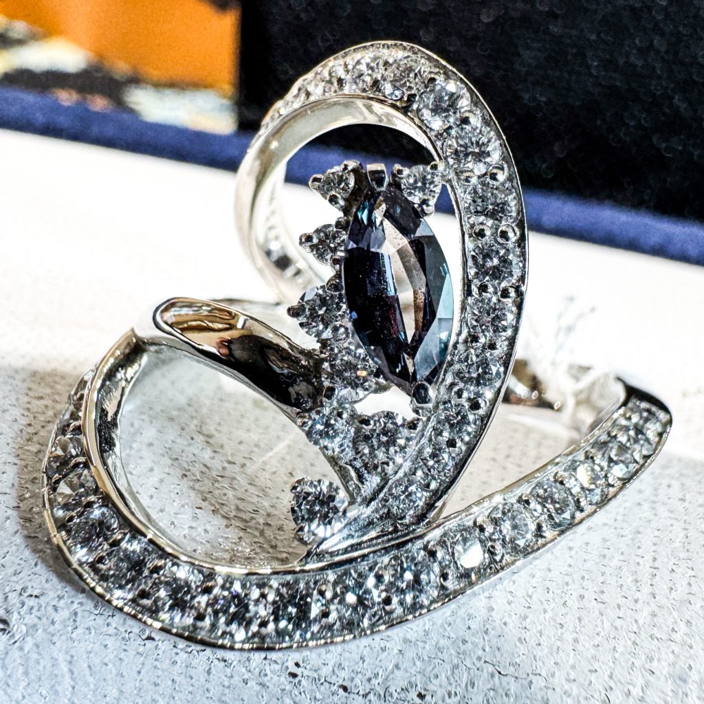 センターにアレキサンドライトを使用した立体的なデザインリング