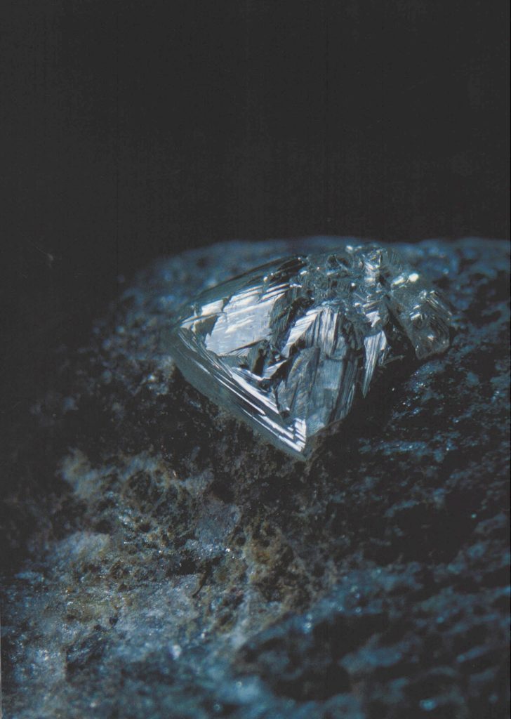 写真は、キンバーライトに抱かれたダイヤモンド原石です。