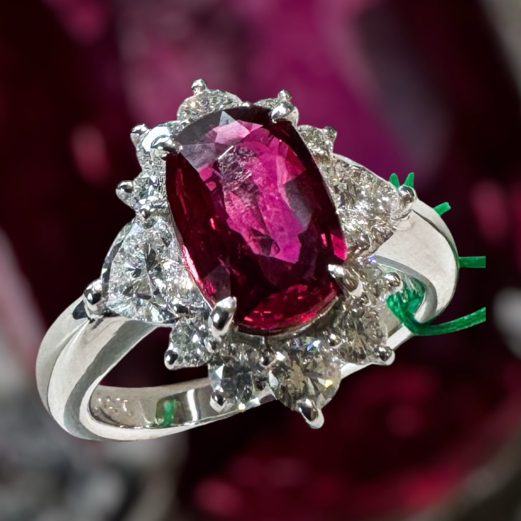 ルビーリング 2025年5月26日 by ijima ルビー 2.02ct ダイヤモンド 0.90ct モザンビーク産 NO HEAT モザンビークからはポルトガルの植民地時代より低品質なルビーは若干出ていました。 2008年のニアサ州に始まり、2009年、モンテプエス近くの新鉱山の開拓によって、大量のルビーの原石がコランダムの研磨中心地であるタイ・バンコクのマーケットに持ち込まれるようになりました。 ミャンマー産と比べるとややオレンジを帯びた赤ですが、現在、無処理の美しい高品質な原石が産出されるようになりました。