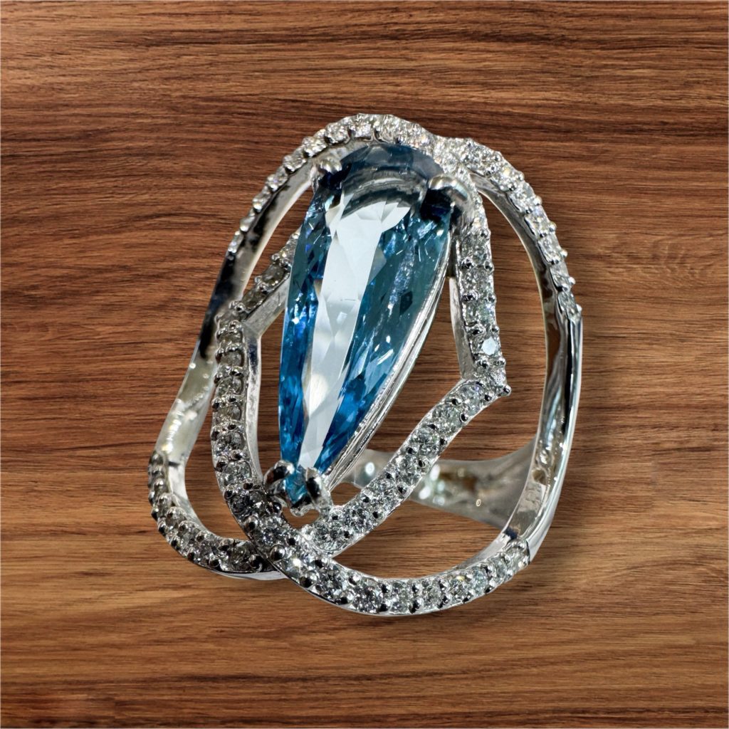アクアマリン 2025年5月29日 by ijima 縦に長いペアシェープカットは、通常、リングにもペンダントにもデザイン的に使いづらいのですが、このリングは素晴らしい出来上がりになりました。 縦に長いので、少し指の大きな方にピッタリだと思います。 人差し指(インデックスリング)もしてもオシャレです。 しっかりとプラチナ地金を使ってます。 アクアマリン 1.56ct ダイヤモンド 0.52ct Pt900 今回、ブログを見てご来店いただいた方には 税込 48万円 で販売いたします。