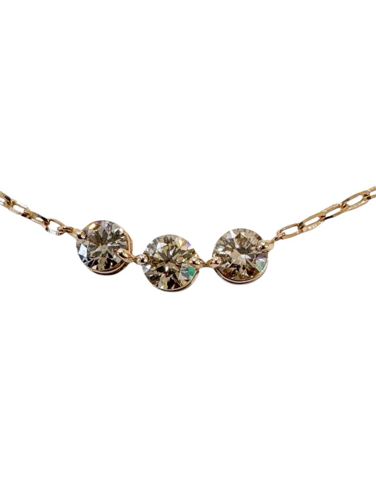 3ケ並びダイヤモンドペンダントは、2点留めですっきりしたデザイン。