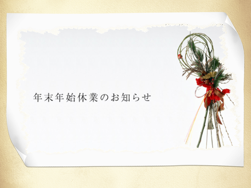12月31日(木) 1月1日(金)〜1月3日(日) お休みさせていただきます。 1月4日(月曜日)から営業いたします。