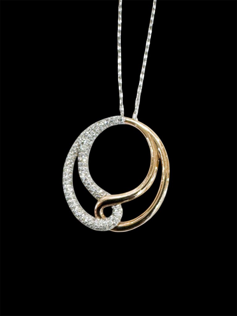 ダイヤモンドペンダント 2025年6月7日 by ijima Pt900/K18PG の地金を使用し、片側にダイヤモンドをパヴェ状に敷き詰めました。 ダイヤモンドは合計で0.92ct使用 パヴェとは、フランス語で「石畳」。石畳の様に規則正しく交互にぎっしりと石留めされています。 大きめのデザインで70cmのチェーンで胸元下で使用してください。 中空の加工になっていて、軽く仕上がっています。 きっと重宝します。 今回、ブログを見てご来店いただいた方には、税込44万円で販売致します。