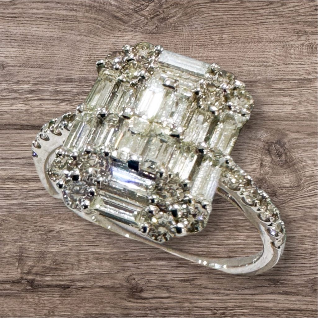 拡大すると小さなダイヤモンドがたくさん留まっているように見えますが、少し離れてみると大きな一つ石(2ctサイズ)以上に見える。