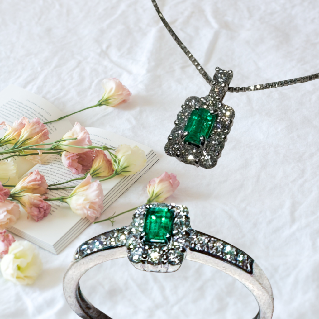 10万円均一 エメラルド 2025年6月10日 by ijima 天満屋百貨店100周年記念企画 10万円均一セールを絶賛開催中です。 今日は、エメラルドのご紹介です。 リング E 0.09ct D 0.22ct Pt900 ペンダント E 0.11ct D 0.25ct Pt900(NC Pt850) それぞれ、10万円?って驚かれるかもしれませんが、現品限りの特別ご奉仕品です。