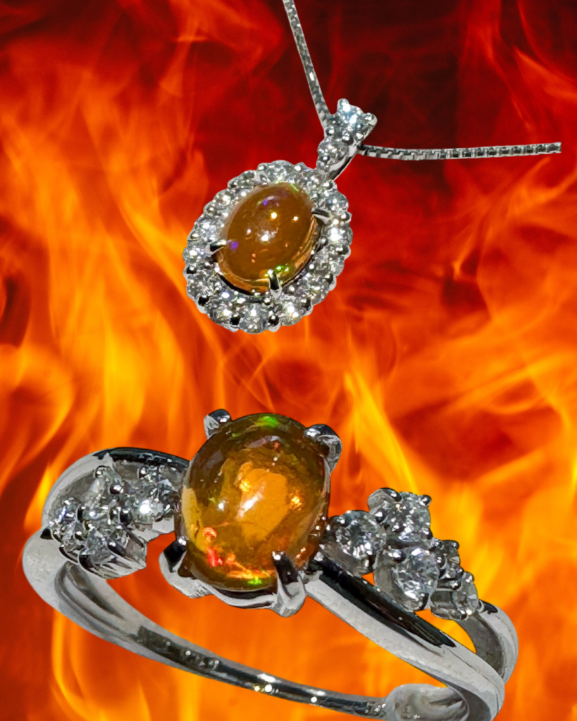 メキシコ産の炎が燃えるような赤の遊色がでるオパールをファイヤーオパールと呼びます。