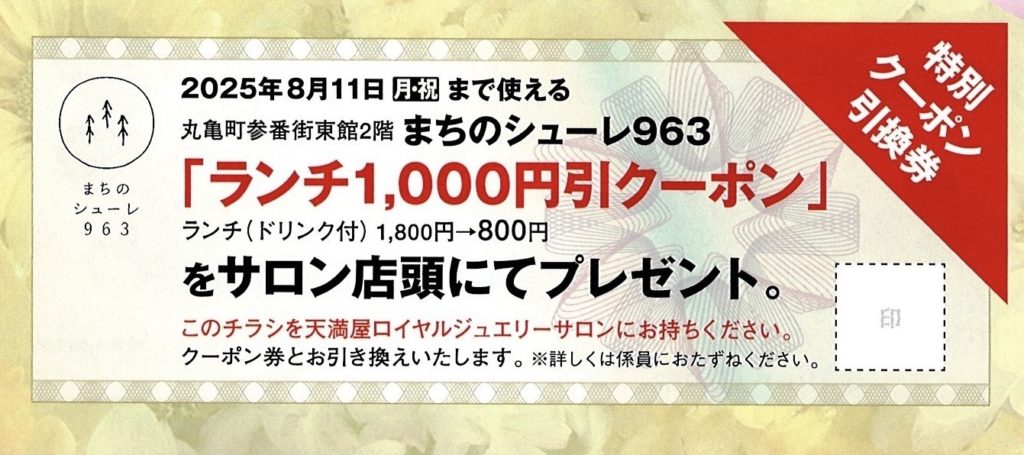 いよいよ明日からです! 2025年7月8日 by ijima サマージュエリーセールは、明日から開催いたします。 週替わりでブランドジュエリーを展開いたしますが、まず第一弾は、「梶光夫ジュエリー」 そして、お店にご来店いただいたお客様には、 「シューレのランチ1,000円引きクーポン」 をプレゼントいたします。 ぜひ、お越しください。 お待ちしています。
