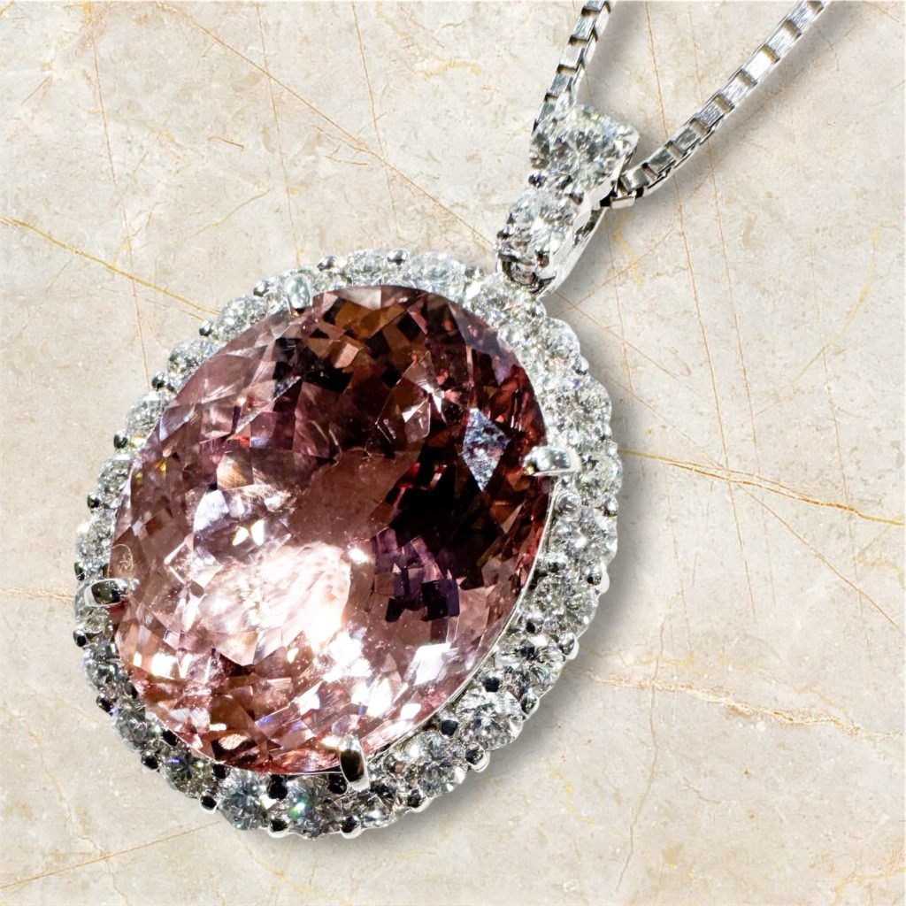 モルガナイトペンダント 2025年8月25日 by ijima モルガナイトペンダント モルガナイトの鉱物種は「ベリル」です。 ベリルの仲間には「エメラルド」「アクアマリン」「ヘリオドール」があります。 エメラルドの緑はクロム由来。アクアマリンの青は鉄由来。モルガナイトのピンクはセシウムとマンガンです。 産地はブラジル・アフガニスタン モルガナイト 10.61ct ダイヤモンド 1.19ct ブログをご覧いただいた方だけに 税込 750,000円