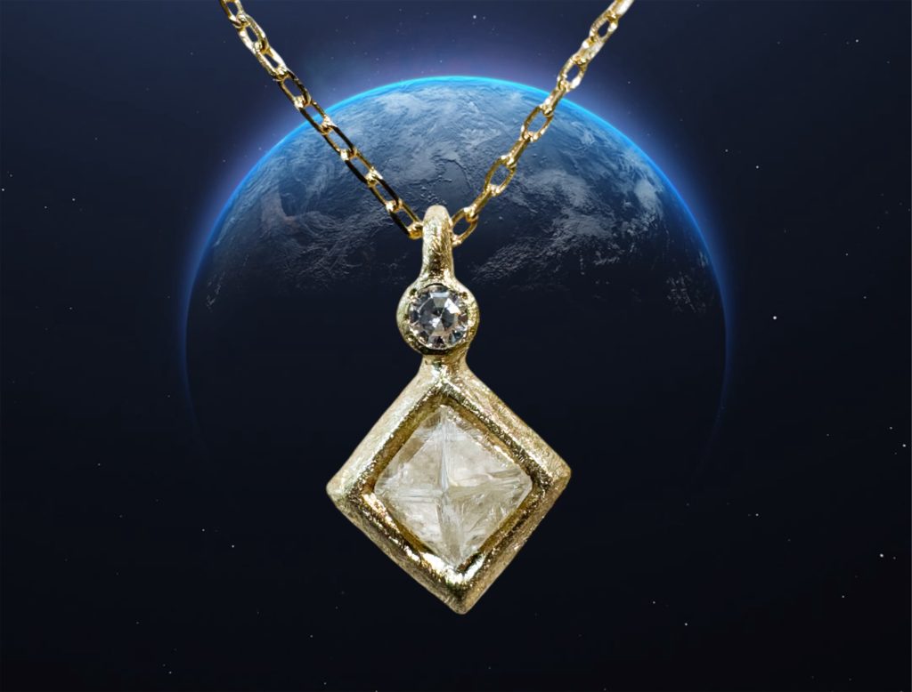 アンカットダイヤモンド 2025年9月9日 by ijima 地球からの贈り物ダイヤモンド 46億年前に地球が誕生し、20億年前に150km以もの地下深く、高温高圧下のマグマ内で結晶しました。その後の火山活動で地表に押し上げられた僅かなものだけが私たちが手にできるダイヤモンドです。 SUWA アンカットダイヤモンドペンダント 0.37ct カナダ産 脇石0.01ct フレーム K18 税込275,000円 正八面体のアンカットダイヤモンドで透明度が高く整ったものは年々希少になり、在庫も僅かになっています。