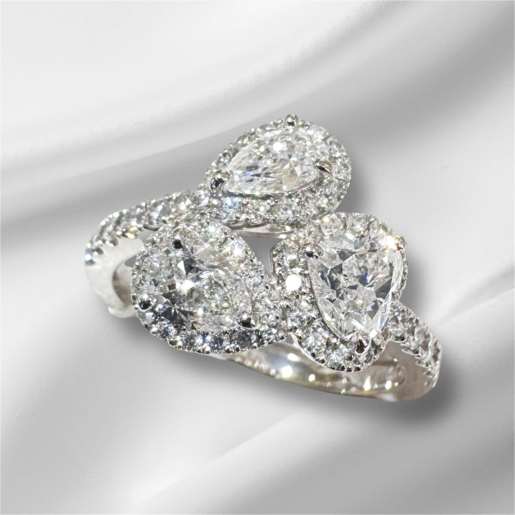 ダイヤモンドリング 2025年9月27日 by ijima 右 ハートシェープダイヤモンド 0.50ct D VS2 上 ペアシェープダイヤモンド 0.30ct D VS2 下 ペアシェープダイヤモンド 0.31ct D VS2 脇石 0.30ct フレームはPT950/1000 センター3石をすべて、Dカラ- VS2の鑑定書がついています。 特別お買い得価格 税込880,000円でご提供させていただきます。 ブログ記事を観た方だけのシークレットです。