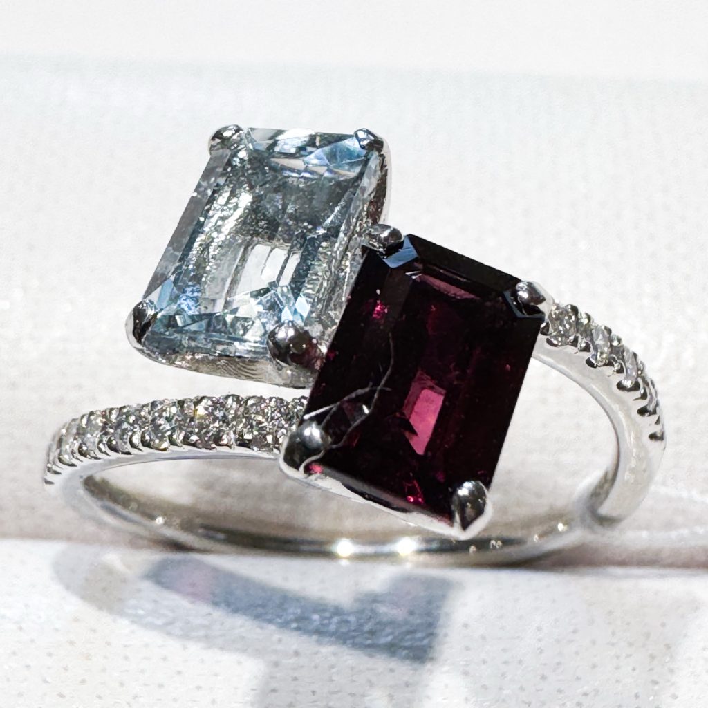 10万円均一 アクア・ガーネット 2025年10月4日 by ijima 天満屋百貨店100周年 10万円均一セール 旧在庫のお買い得商品をご紹介中 アクアマリン 0.87ct ガーネット 1.29ct ダイヤモンド 0.19ct Pt950/1000 フレームはしっかりと地金を使用しています。 このボリュームで、この価格は絶対にお買い得です。