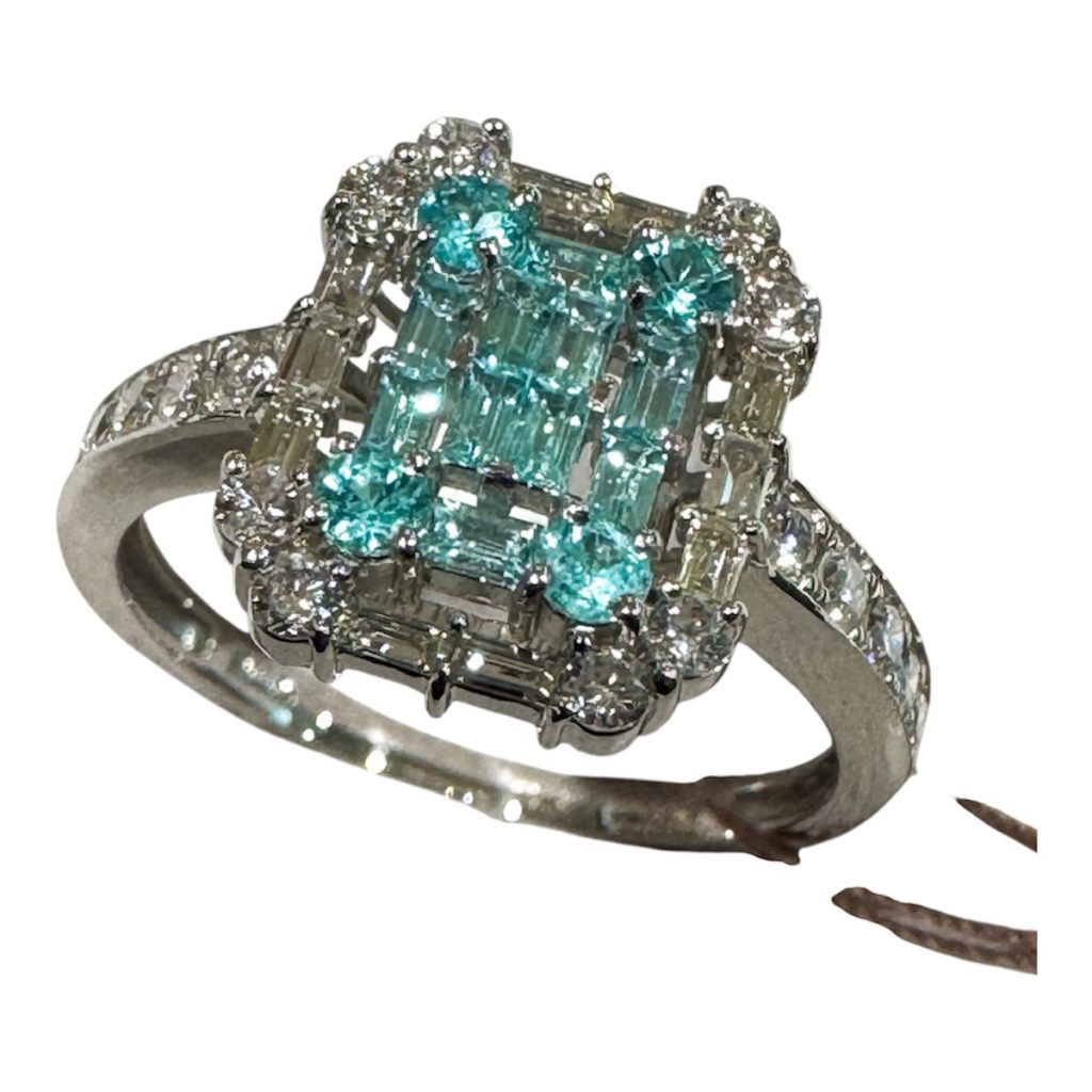 お買い得情報 2025年10月17日 by ijima プラチナ950/1000 ダイヤ取り巻き パライバトルマリンリング パライバトルマリンのスクエアカットを10ピース、ラウンドカットを4ピース 合計14ピース 0.37ct を通常2〜3ctサイズに観えるように配列して石留めをしています。 取り巻きダイヤもスクエアダイヤやラウンドダイヤを美しく 0.48ct 配列しています。 旧価格から更に値下げしました。 ブログ記事ご覧の方だけに 税込280,000円の超お買い得価格で販売します。 これは、破格です!お急ぎください。