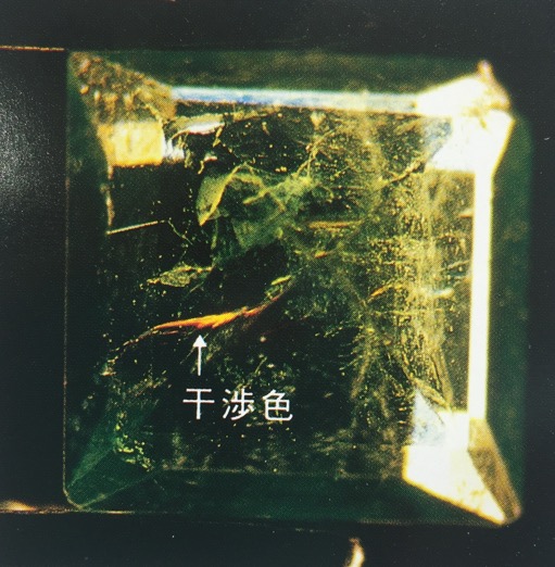 含浸処理エメラルドの判別 2016年1月15日 by ijima 顕微鏡写真のエメラルド内部に見える黄色い干渉色がわずかな亀裂に含浸されたオイルや樹脂です。これは、水に浮いた油の中に見える色と同じ現象です。このように含浸処理の有無はインクルージョンの特徴により判別が容易です。また、アルコール液に一昼夜から数日浸すことでも、オイル含浸の有無が確認できます。
