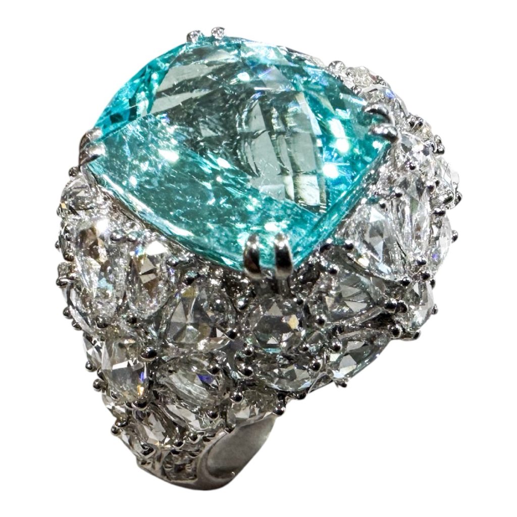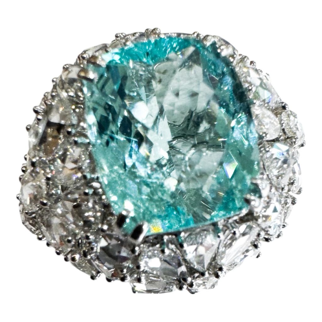 お買い得情報14 2025年10月30日 by ijima K18WG ダイヤモンド入り パライバトルマリンリング パライバトルマリン(アフリカ ナミビア産) 5.97ct ダイヤモンド 3.40ct アフリカ産のパライバトルマリンも数年前のブラジル産の価格に並んでしまった現状から考えると、びっくりする価格で販売いたします。 ダイヤモンドは全てローズカットのペアシェープ型で埋め尽くしています。 色味もアフリカ産とは思えないほど濃く深みと照りがあります。 税込500万円で販売いたします。