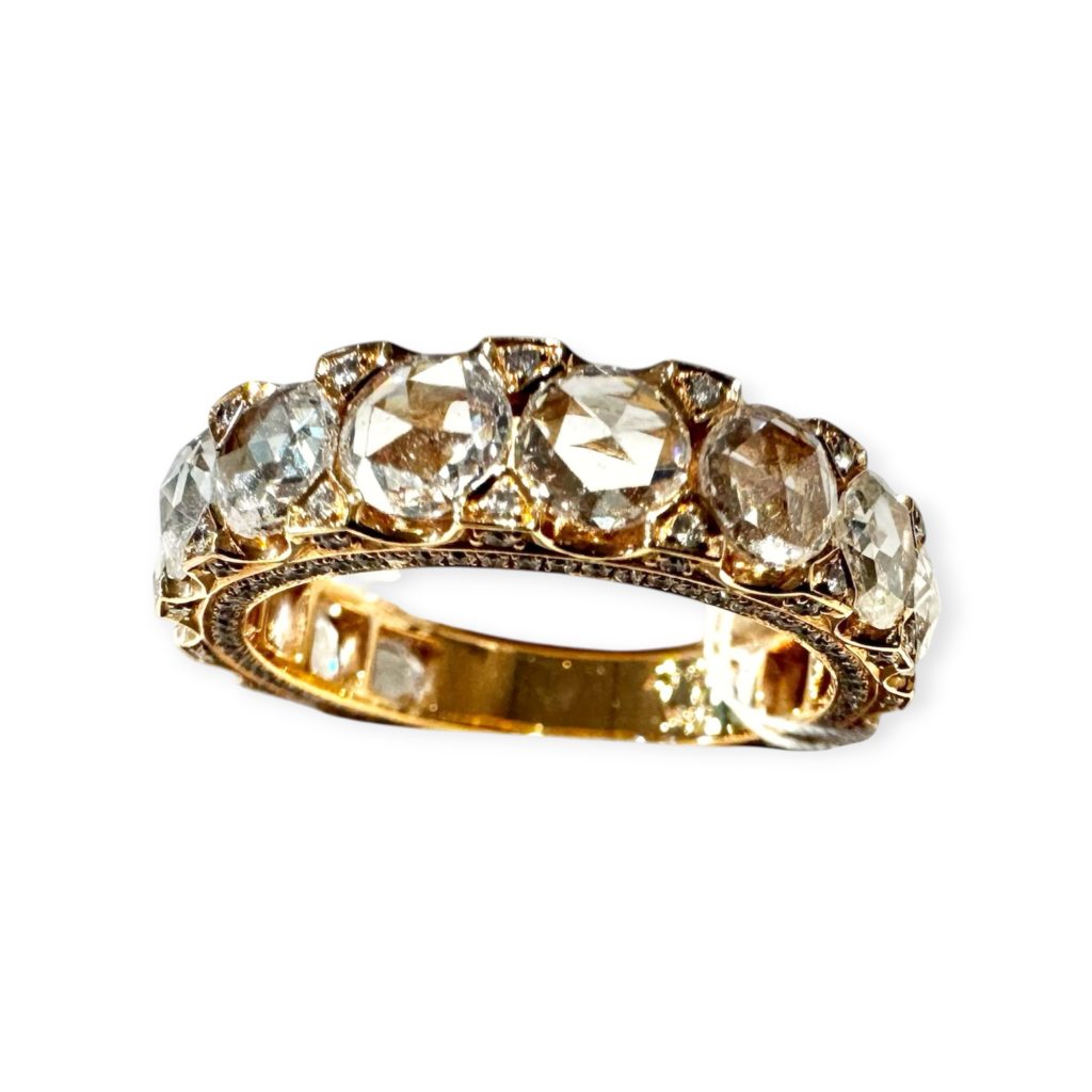 ローズカットダイヤリング 2025年11月10日 by ijima K18PG ローズカットダイヤモンド エタニティリング 2.17ct サイズ直し不可の為、シンデレラリング の方のみの販売です。 サイドにもメレダイヤを埋め込んだ豪華なリングです。 受注生産終了の為 在庫処分いたします。 税込 500,000円