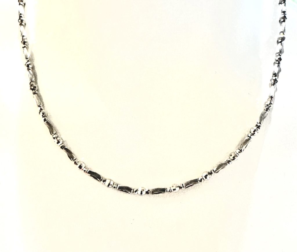 プラチナネックレス③ 2025年11月20日 by ijima プラチナ850/1000 45cm 8.45g しっかりと重量感のある長方形のボックスコマとミラーボールを組み合わせたネックレス。 ミラーボールはもちろん、ボックスも角度を変えるとキラキラと光ります。 毎日、着けても丈夫で飽きが来ないデザインです。 特別価格 148,000円税込 ブログ記事を見たと店頭で伝えてください。