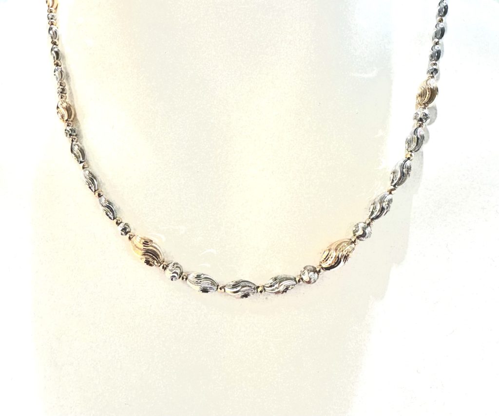 K18PG Pt850 ネックレス 2025年11月21日 by ijima K18PG(ピンクゴールド)Pt850/1000 コンビのネックレスです。 40cm(+5cm) 11.7g たまご型のパーツに手彫りで捻りの彫りを施した手間をかけた逸品。 金とプラチナのコンビが絶妙で高価なイメージを演出しています。 特別価格 220,000円税込 ブログ記事を見たと店頭で伝えてください。