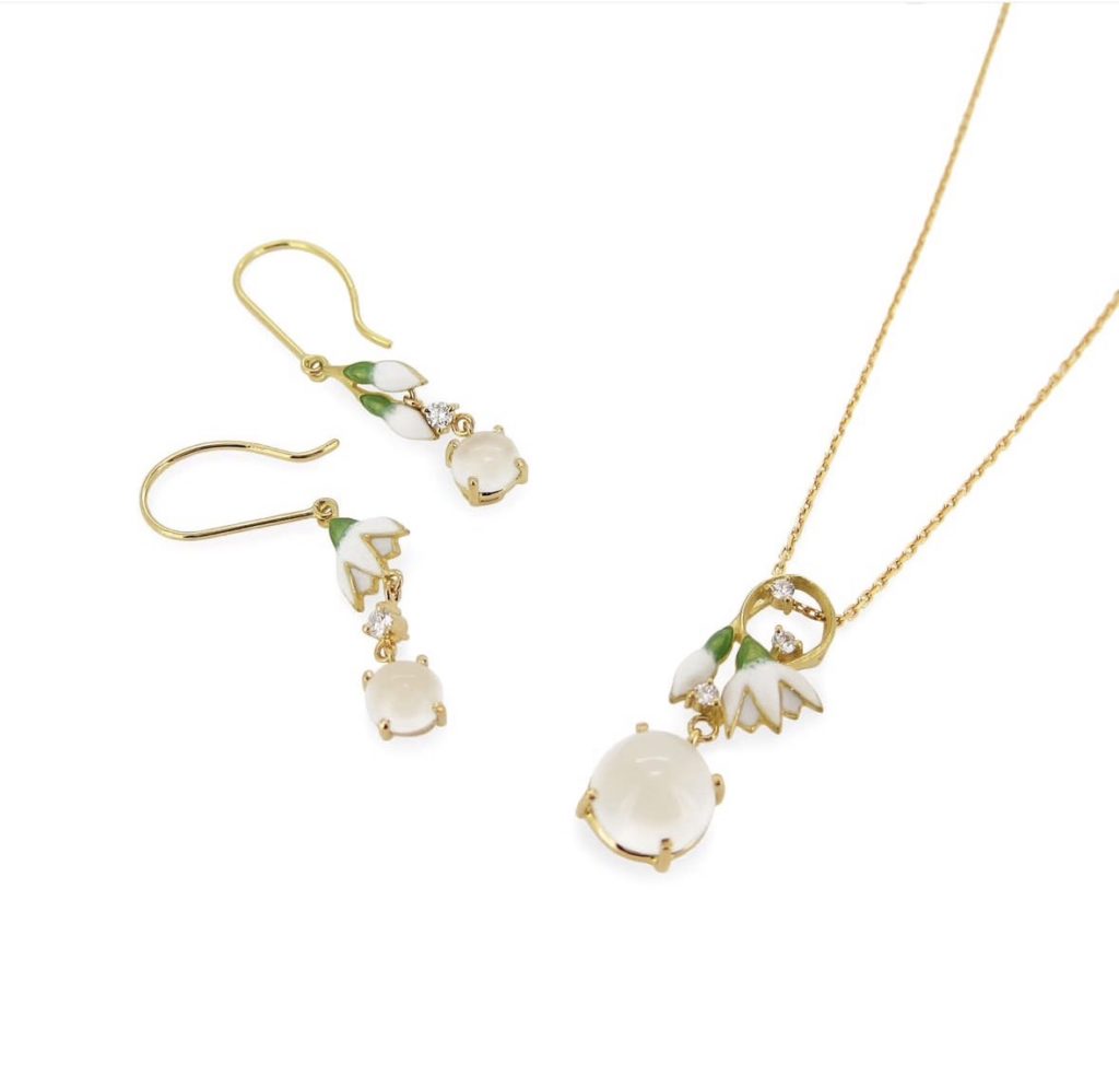 バスタイユ技法を駆使したペンダントとピアスの新作。