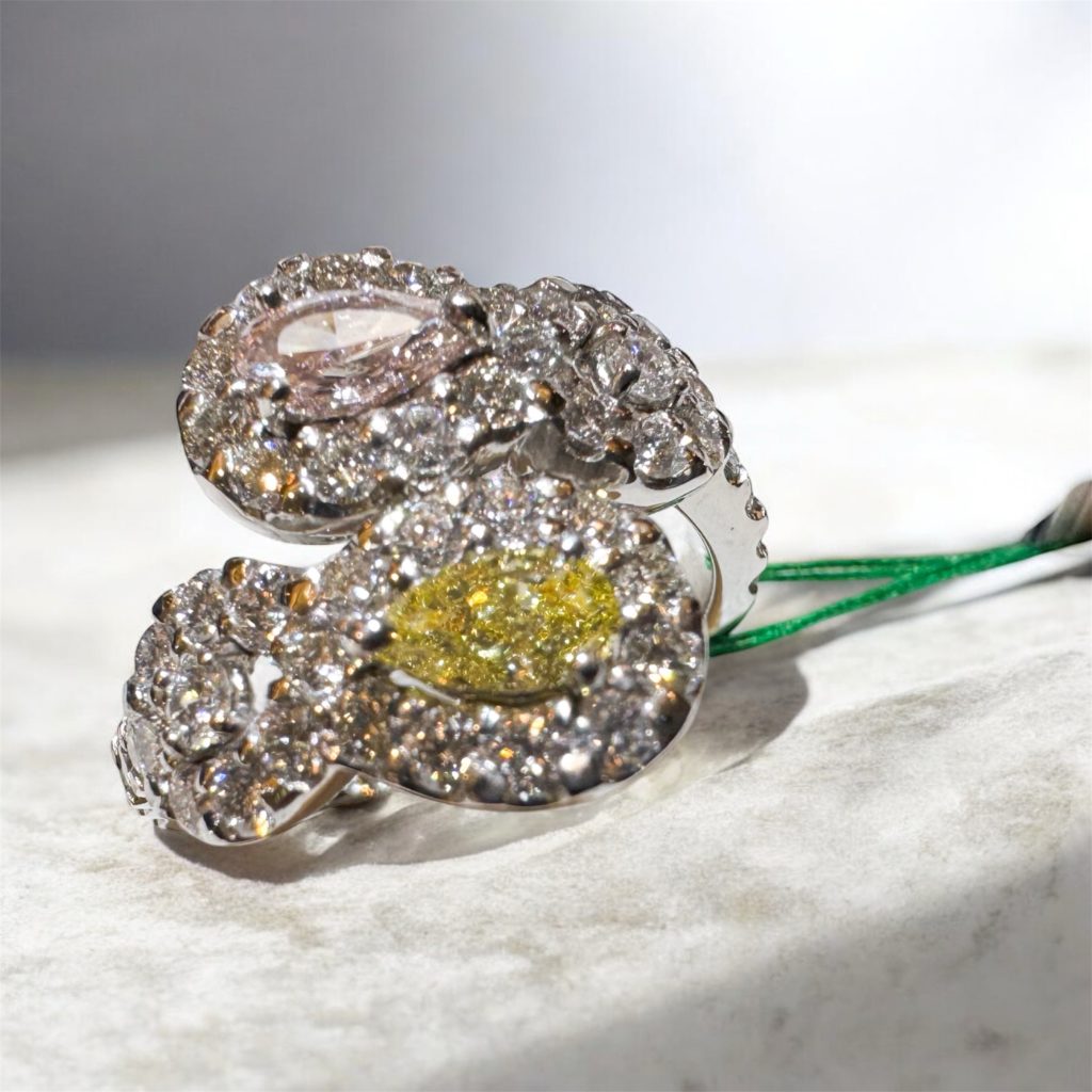 ピンク・イエローダイヤリング 2026年1月6日 by ijima 希少で人気沸騰中のピンクダイヤモンドとイエローダイヤモンドを贅沢にツインでまとめた高級ジュエリーリング。 ファンシーライトピンク 0.34ct SI1 ファンシーインテンスイエロー 0.296ct SI1 GIA鑑定書付きで、ハイブランドでもなかなか無いデザインです。 少し古い造りのため地金もしっかりと使用しています。 為替の円高のときに仕入れしたとてもお買い得な逸品です。 お正月特価 税込 1,800,000円