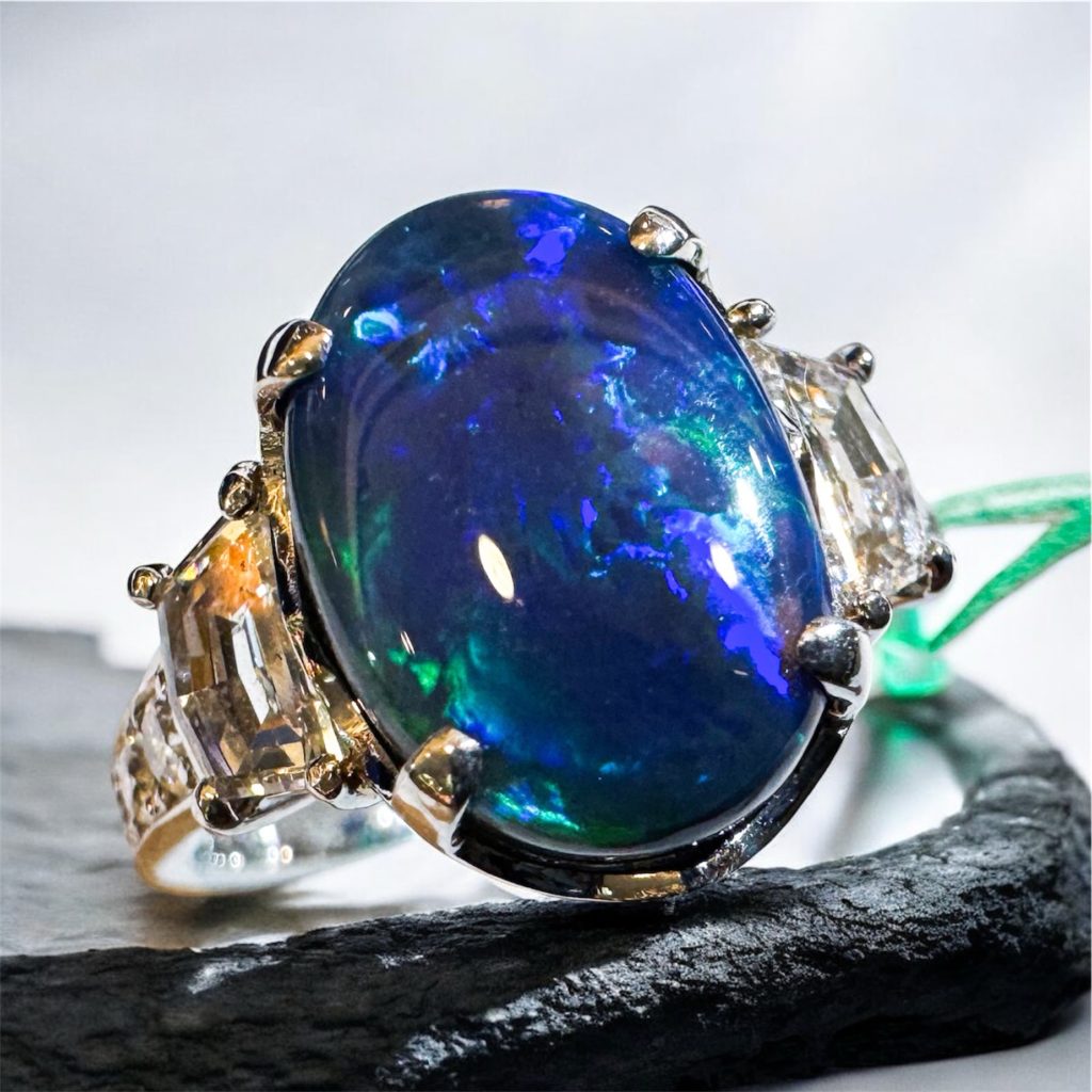 ブラックオパールリング 2026年1月24日 by ijima Pt900 ブラックオパール ダイヤ入り リング センター ブラックオパール オーストラリア産 まるで、光の中で海の中を覗いているように美しいブルー。4.02ctと肉厚で形もいい。 両肩のダイヤモンドも 0.98ctとサイズの大きいダイヤモンドを使用してシンプルにゴージャスに造りました。 海外でも人気が高まっていて、昨年から極端に市場からブラックオパールが消えています。値上がりの予感がします。 決算処分特別価格 税込 1,800,000円