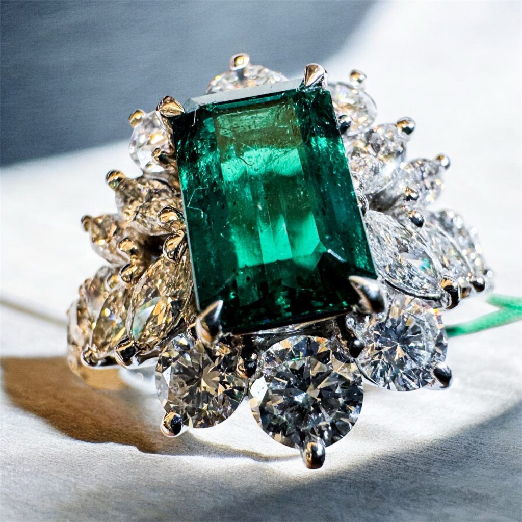 エメラルドリング コロンビア 2026年1月27日 by ijima Pt900 エメラルド ダイヤモンド巻き リング センター エメラルド(コロンビア産) OIL処理(F1)は、ほとんどNO OILに近い天然無垢のエメラルドの意味。1.20ct 取巻きダイヤモンドはマーキスカットやラージメレを使用して 1.99ctも使用して更に価値を高めています。 文句なしの逸品高級ジュエリーです。 決算処分特別価格 税込 3,500,000円