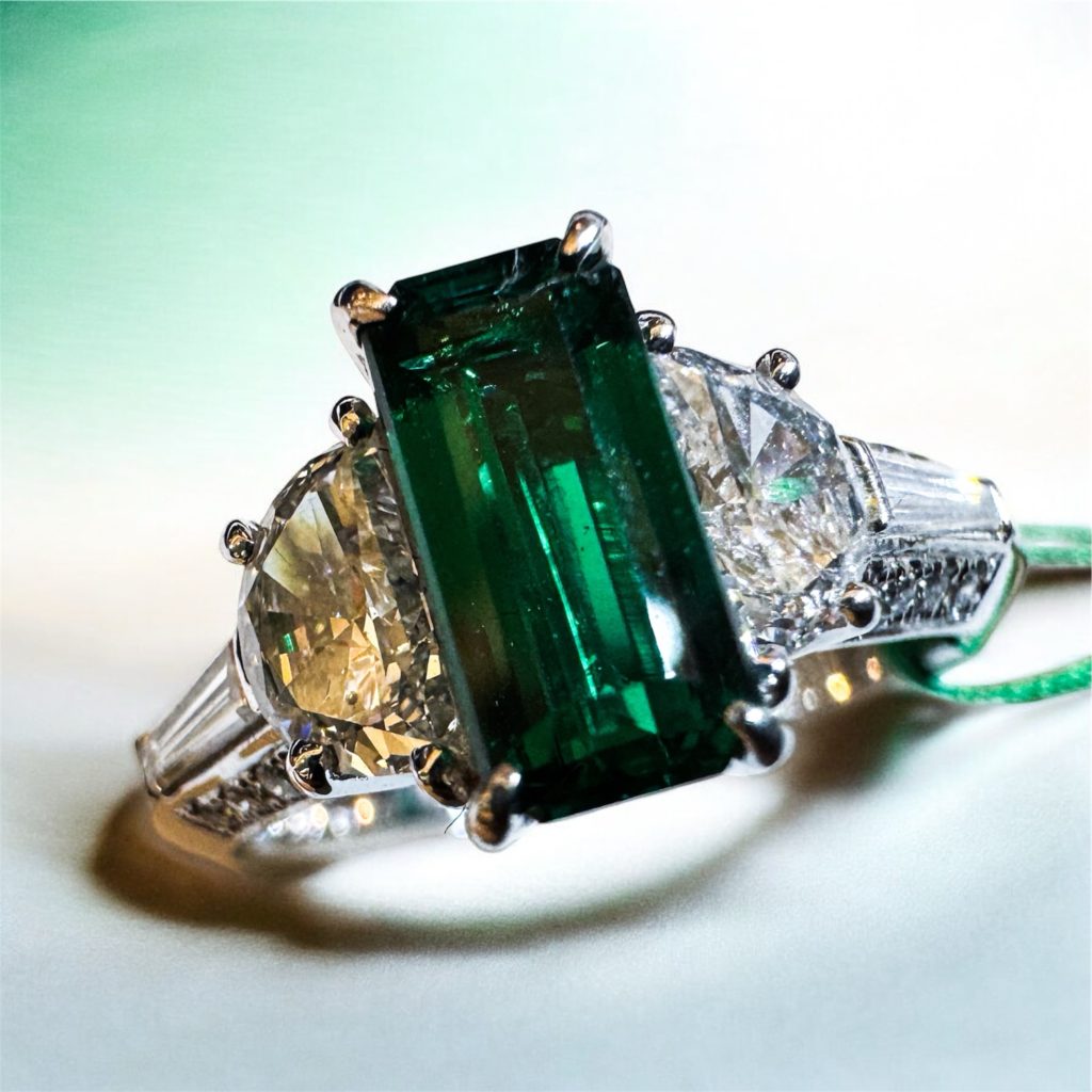 エメラルドリング NO OIL 2026年2月13日 by ijima Pt ノンオイル エメラルド ダイヤ入り リング オイル処理が行われていない、そのままで美しく内包物が無く、結晶も整ったエメラルド。 これは大変希少で、今は絶滅するほど。 ザンビア産ですが、ブルーがかった深いグリーンがコロンビア産と見間違えるほど。 中石 0.82ct ダイヤモンド 0.35ct / 0.15ct / 0.11ct 決算処分価格 税込 3,500,000円
