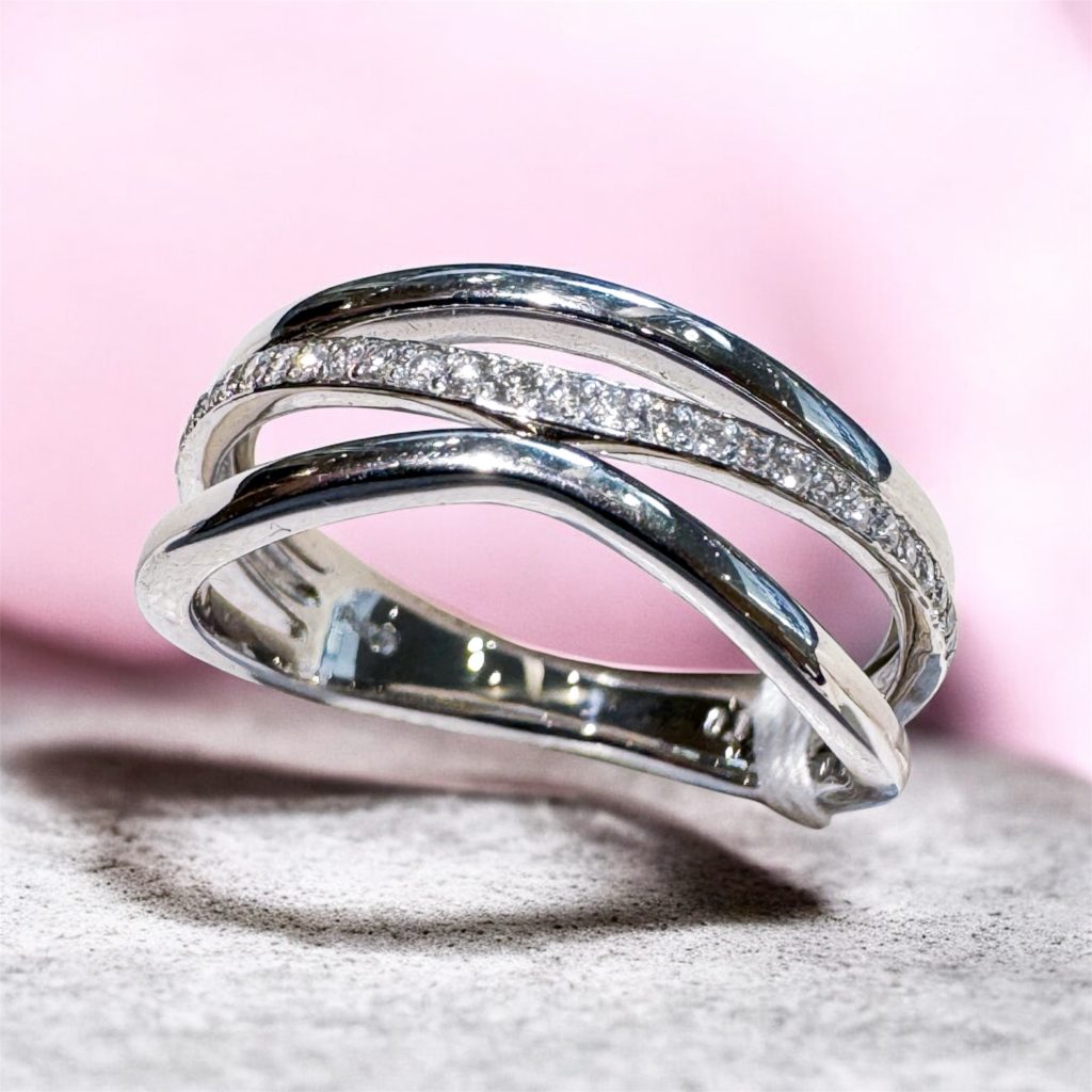 プラチナ ダイヤリング 2026年2月15日 by ijima Pt950 ダイヤモンドファッションリング 0.10ct 重ね付け用に作られたリングです。片側がV型になっているのでソリティア系のリングと重ねてつけられます。 また、指を変えて2本使いにされてもオシャレ度アップ。 ことらは 税込10万円で展示中。