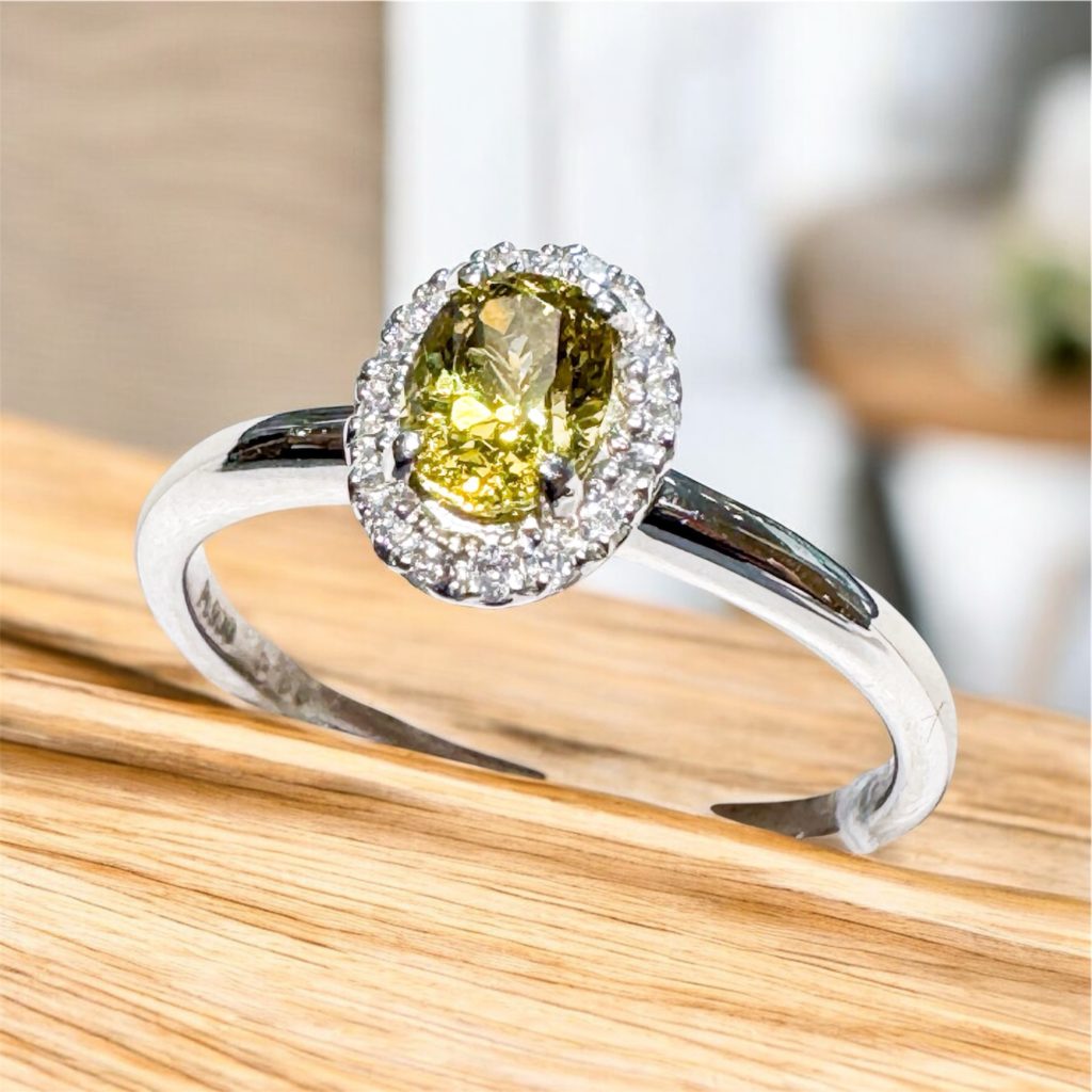 ゴールド ガーネット 2026年3月5日 by ijima アンドラダイトガーネット アンドラダイトは、黄色がトパーズに似ていることから『トパゾライト』と呼ばれています。 緑色の『デマントイド』と同じ ウグランダイト(カルシウムガーネット)の種類に分類されます。 光の分散は、0.057 でダイヤモンド(0.054)より強く独特な姿を示します。 希少石です。 ガーネット 0.55ct ダイヤモンド 0.08ct 税込 100,000円 現品限りの特別出品です。