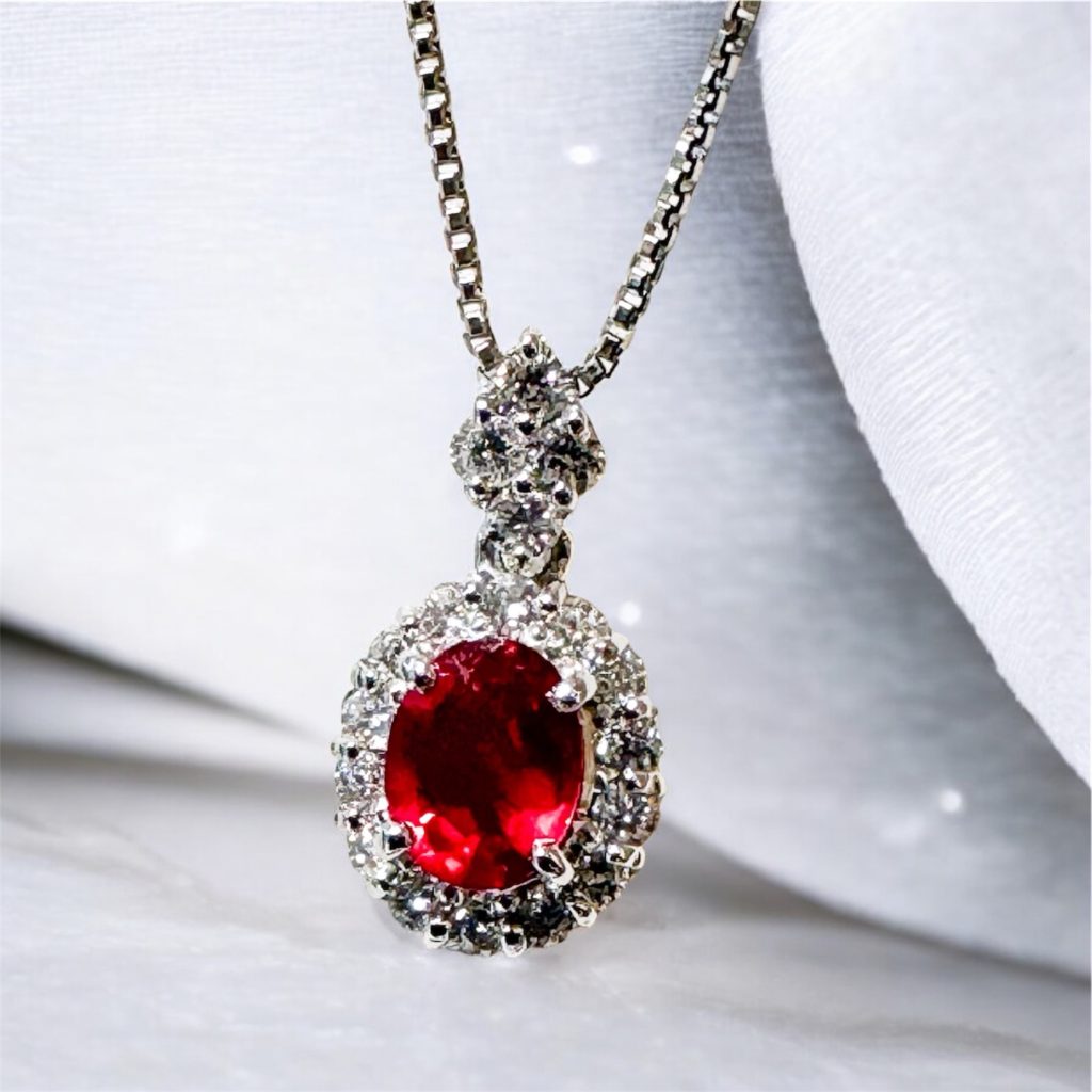 Pt ピジョンブラッド・非加熱 ルビー ダイヤ入り ペンダント